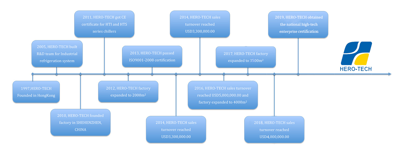 Hero-Tech Group Company Limited es va establir el 1997 i es va integrar pas a pas amb l'equip d'R + D, producció, màrqueting i servei tècnic.
