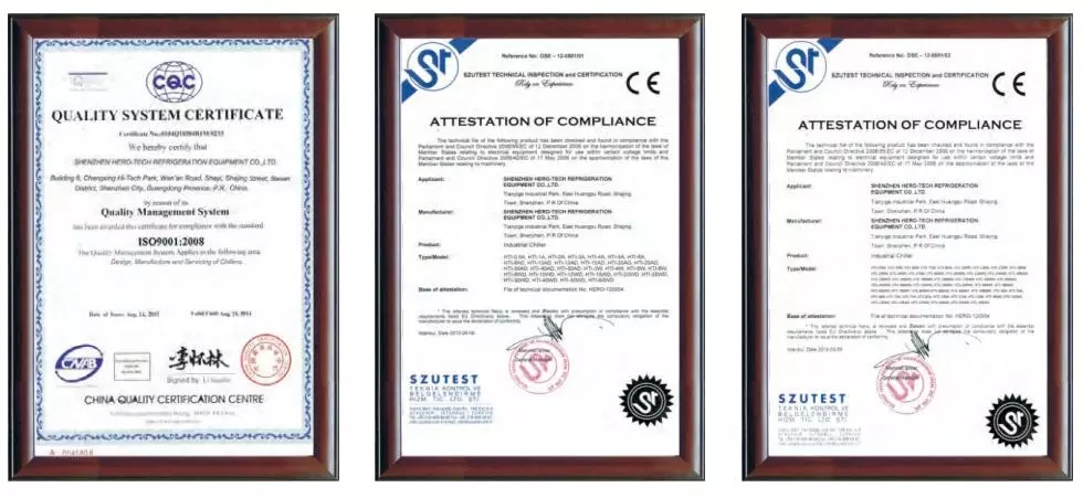 A4: Yes, we have more than 23 years in industrial refrigeration business. Our factory located in Shenzhen; Welcome to visit us at anytime. Also have patent on the chillers’ design.