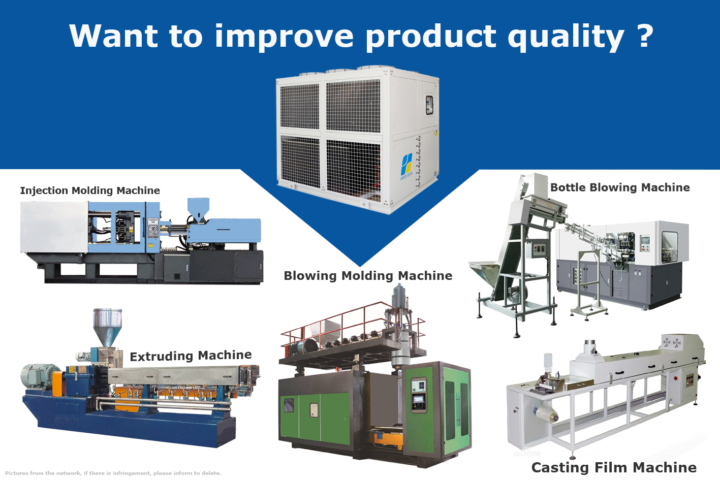 Vandens aušinimas ir vėsinimas reikalingas beveik visose pramonės srityse.HERO-TECH aušintuvai yra ypač tinkami tekstilės, maisto perdirbimo, plastikų, farmacijos, gėrimų, inžinerijos, stiklo, lazerių ir elektronikos pramonėje, šiose srityse: